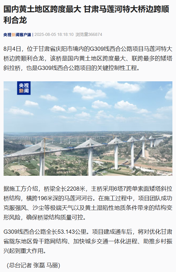 - 甘肅工程咨詢集團監(jiān)理項目取得重大突破:國內(nèi)黃土地區(qū)跨度最大 甘肅馬蓮河特大橋邊跨順利合龍